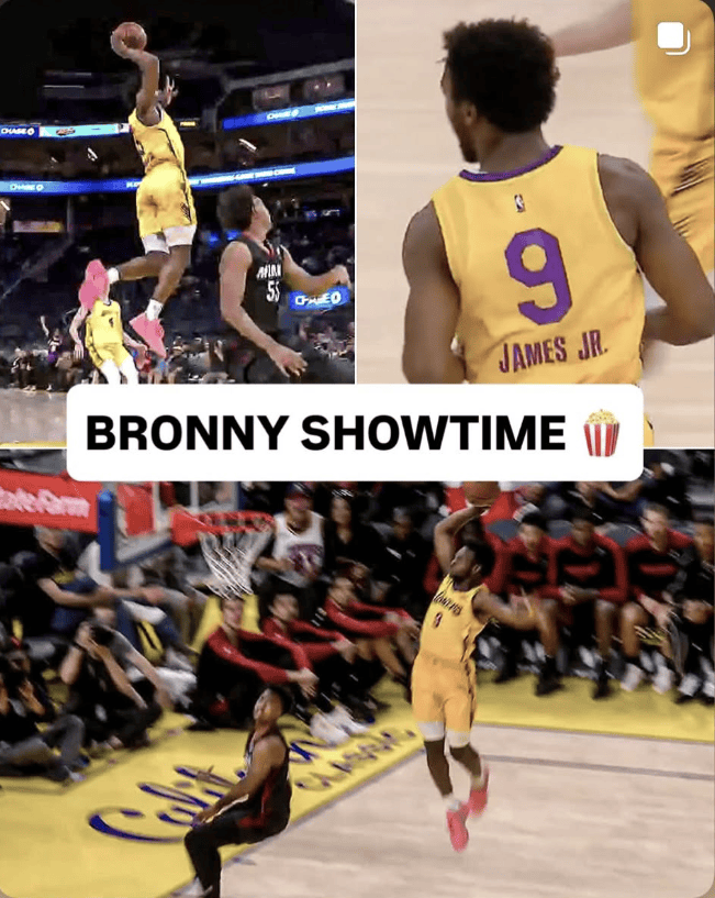 布朗尼父亲勒布朗在Ins上转发了这个扣篮。
